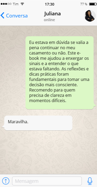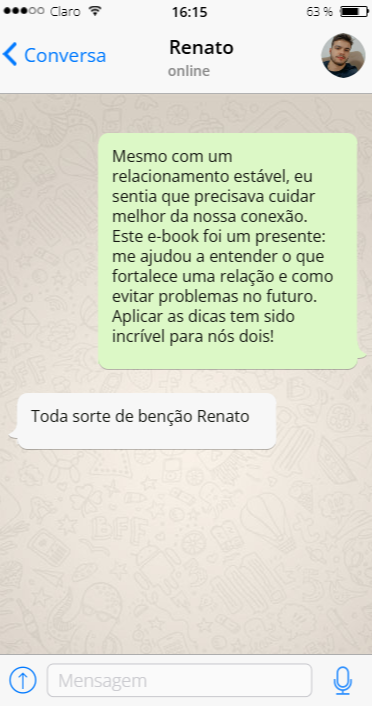 Esse e-book já ajudou diversos casais a ter um relacionamento mais sólido e feliz, o e-book trás dicas para que você tenha um relacionamento duradouro e supere os desafios do dia a dia, só esse e-book já pagaria o investimento.